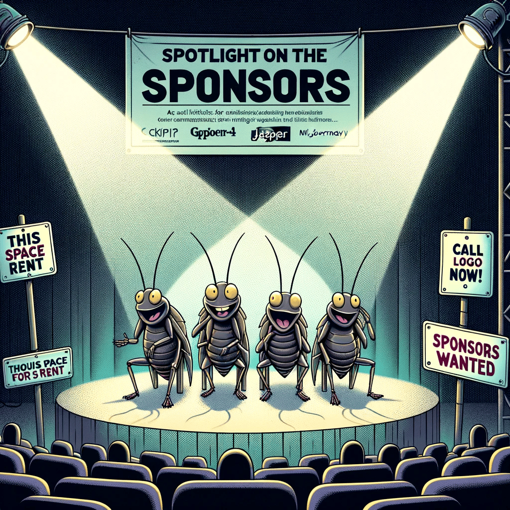 Here's a take on our current sponsorship situation, featuring our very own cricket ensemble in the spotlight. This section is sure to be bustling with sponsors soon, so interested parties should make their move quickly and contact us!