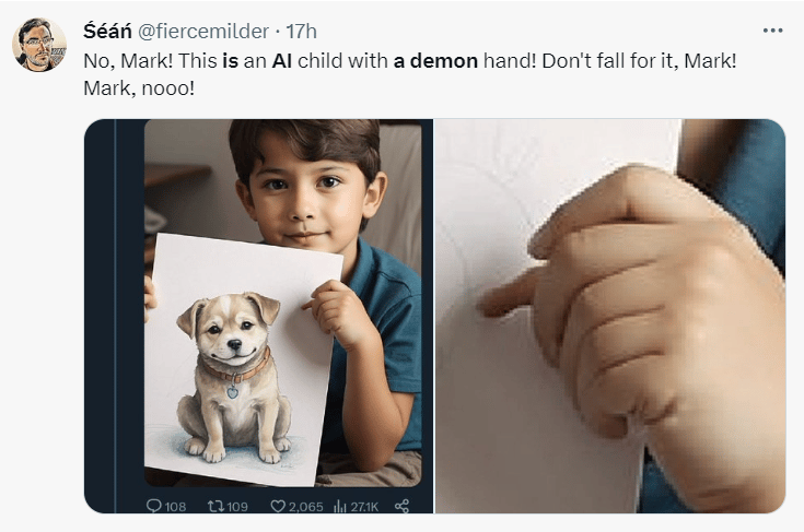 Our take - Careful, Mark, that's how they getcha — with cuteness and puppy pictures made by demon hands.