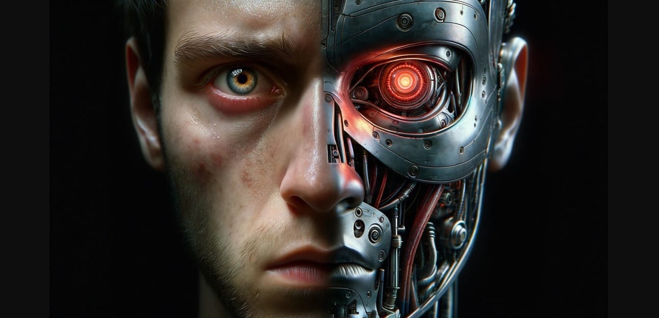 Behold the offspring of GPT-4/DALL·E's latest foray into digital Frankenstein-ism—a visage split between terror and tech, fear and ferrous.